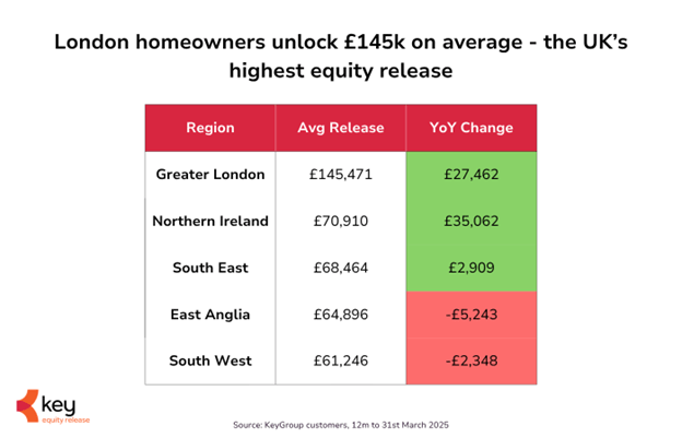 London tops average initial releases: Londoners released an average of £145,471 per plan at the end of Q1 2025 — the highest in the UK.