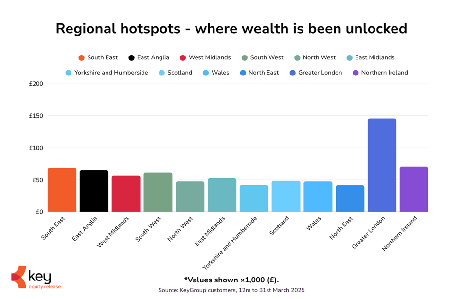 Together, these regions accounted for over 150 cases in 2025, showing that demand for equity release is also prevalent outside the South.
